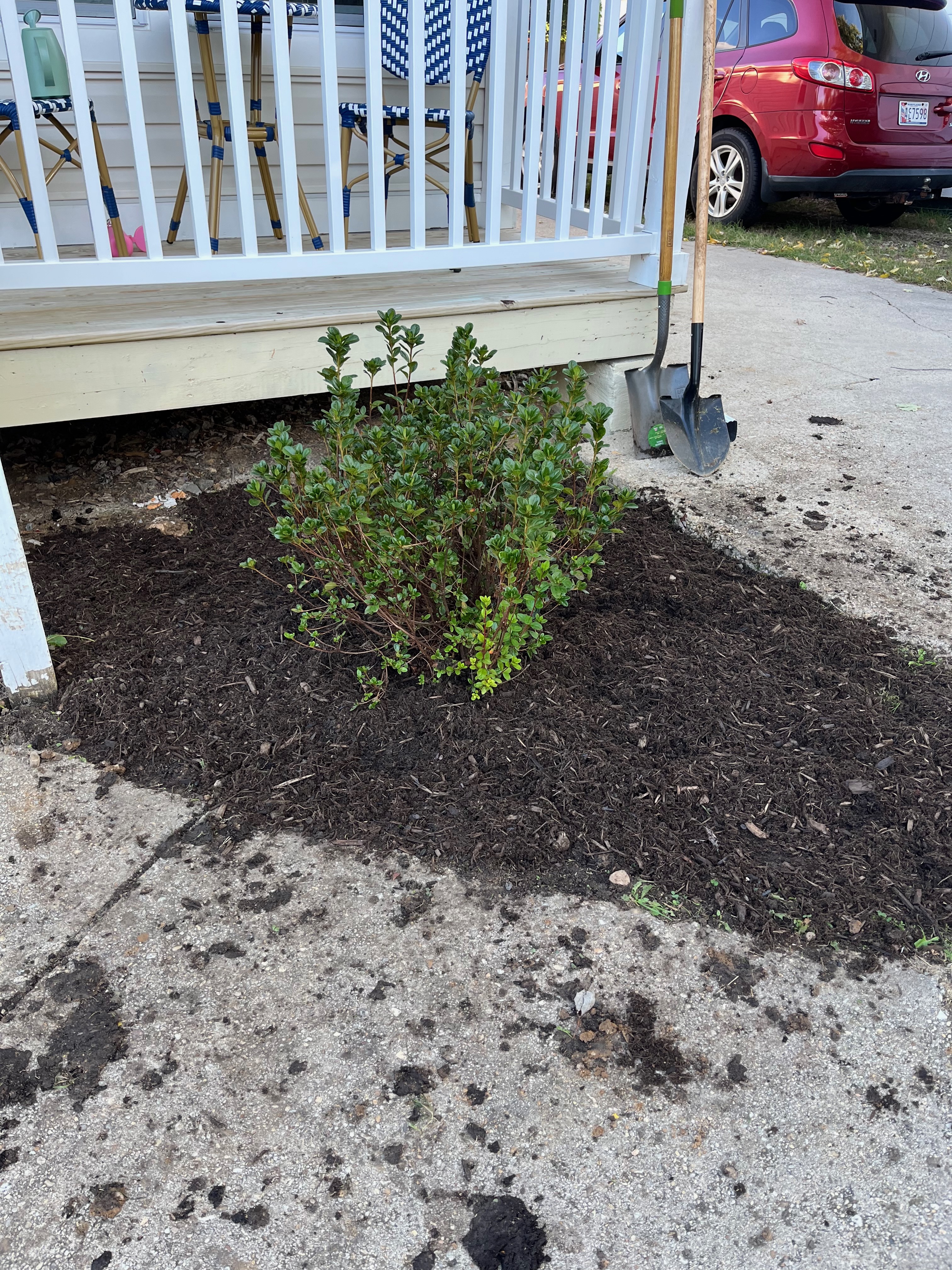 Planted our first shrub, an Azalea bush (October 2023).