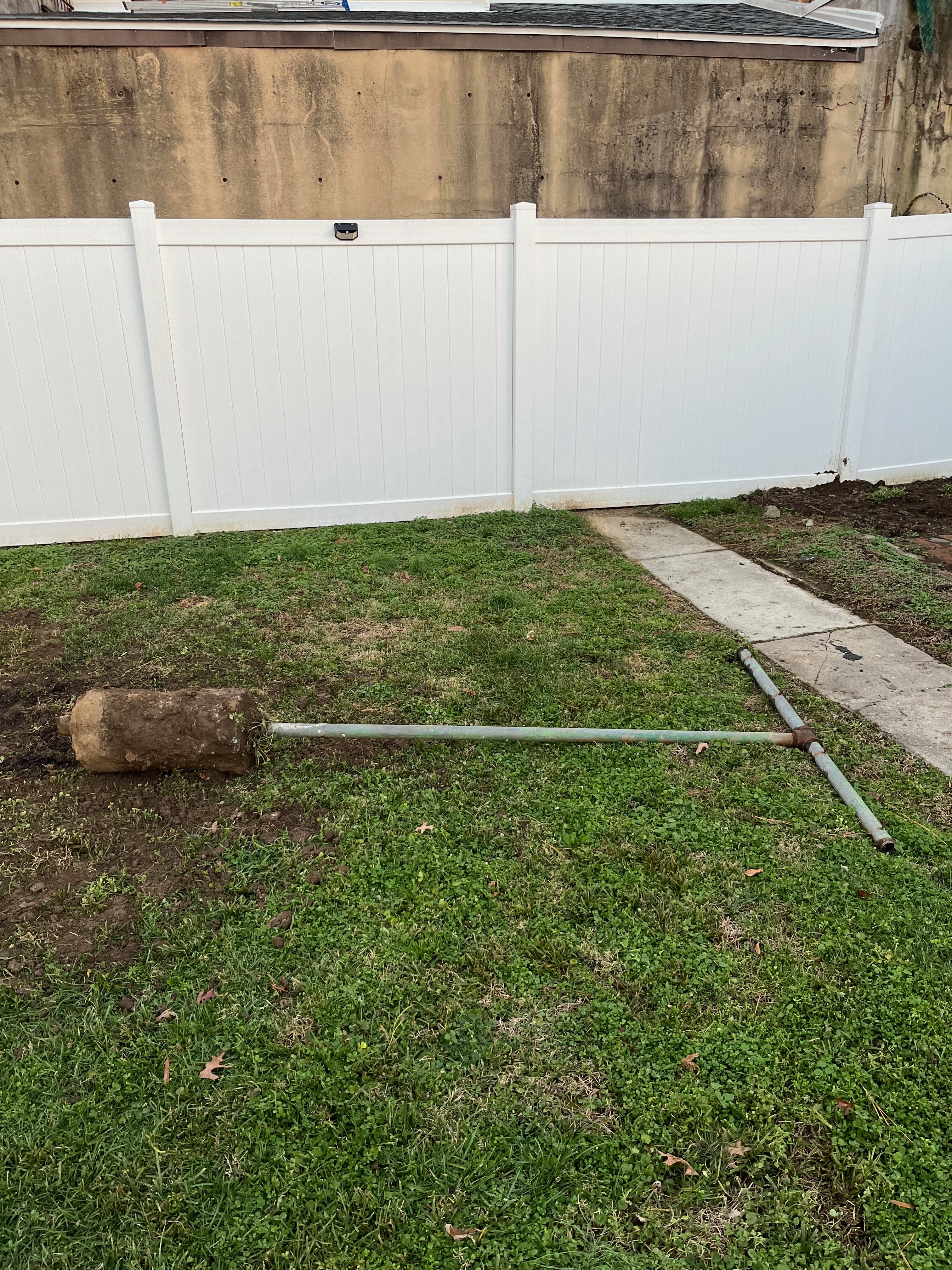 Removed old clothesline post (December 2023).