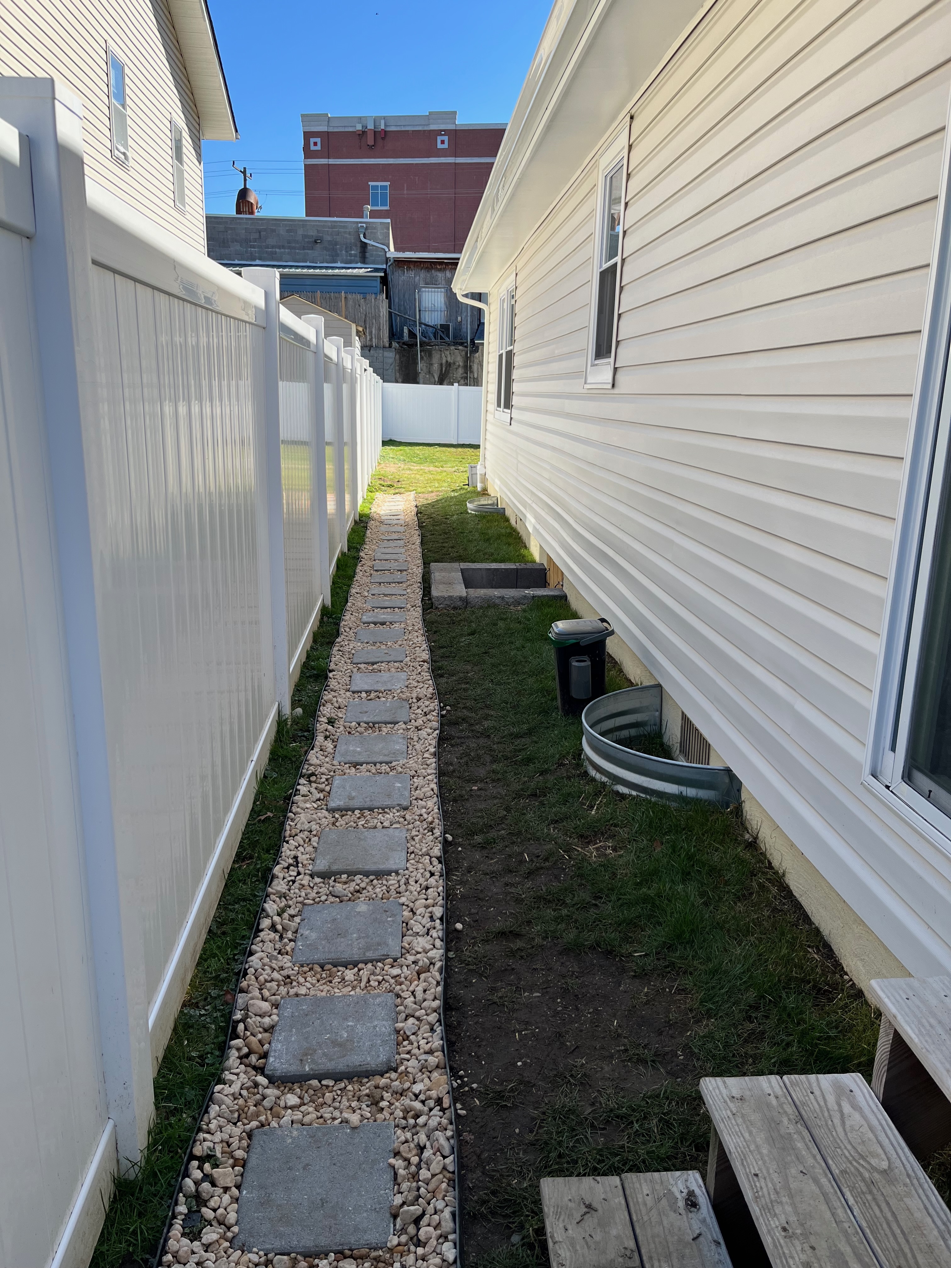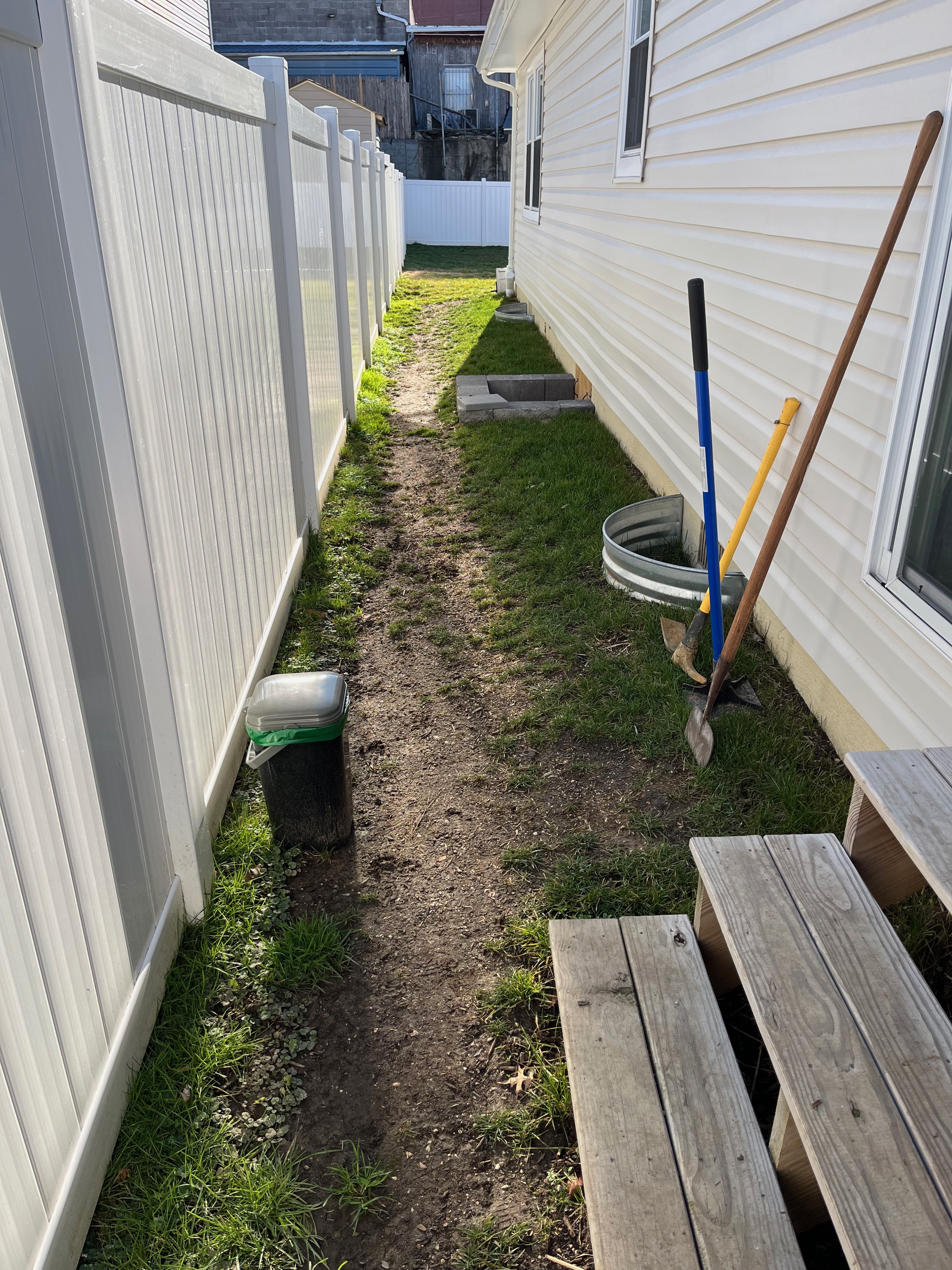 Before: added a stepping stone walkway along the side of the house (February 2024).