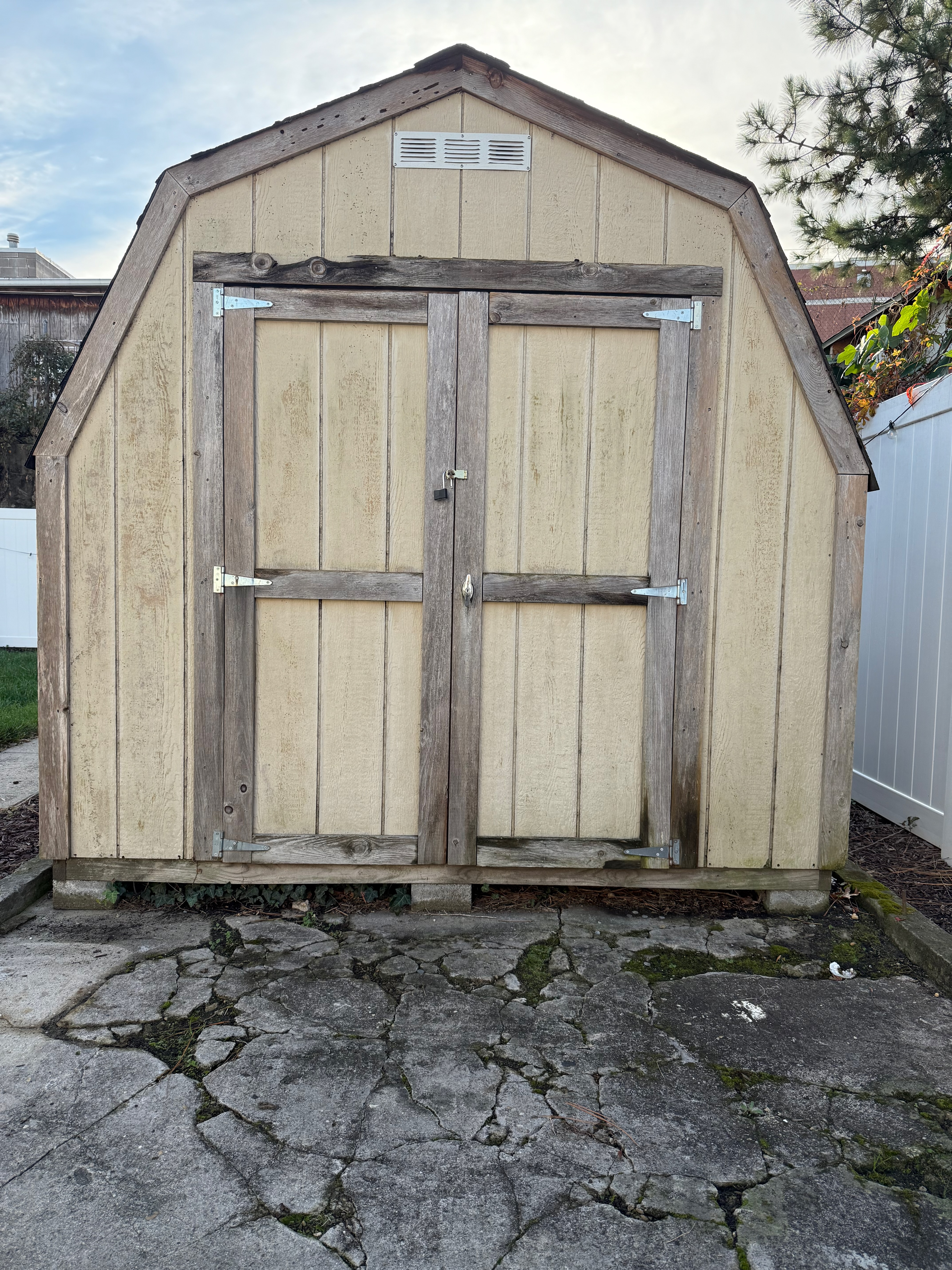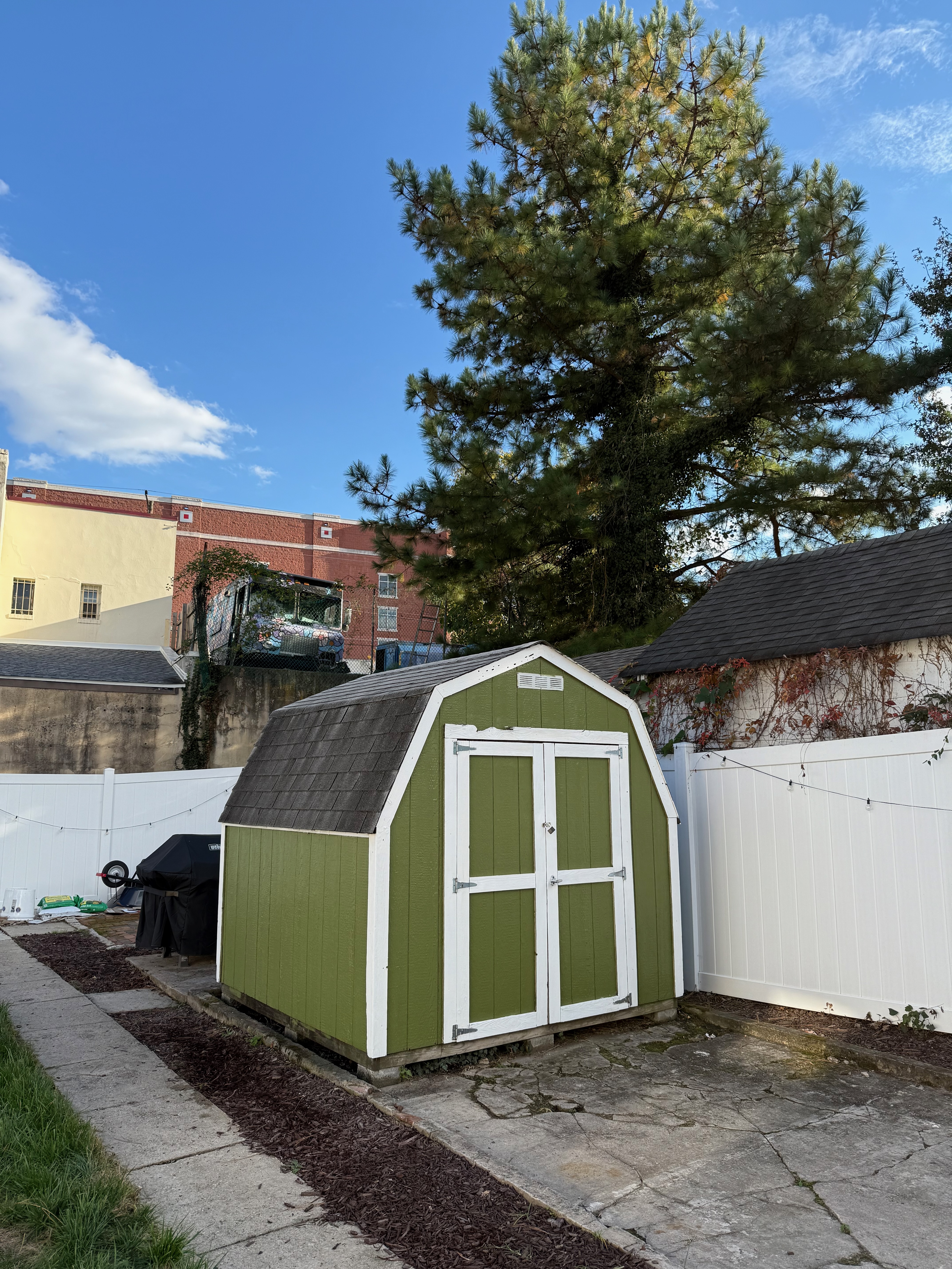 Before: painted the shed (October 2025).